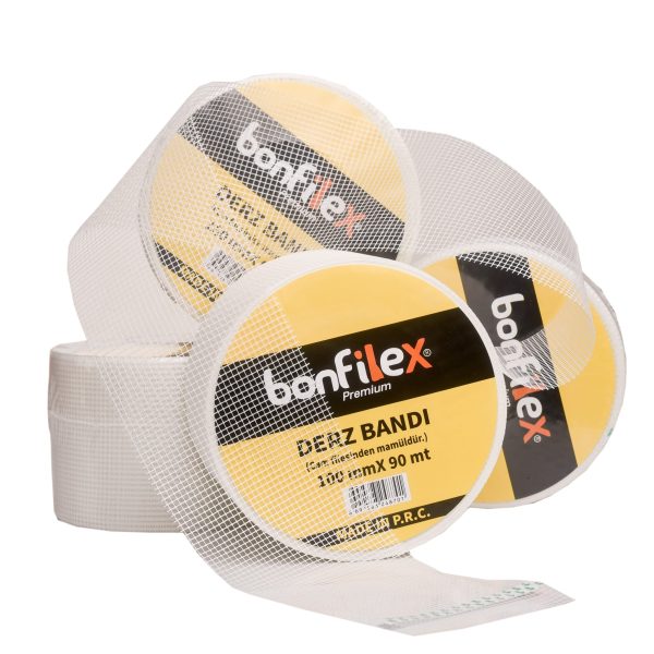 Bonfilex tarafından üretilmiş 100mmx90mt özelliklerine sahip üstün kaliteye sahip derz bandı ürünümüz.